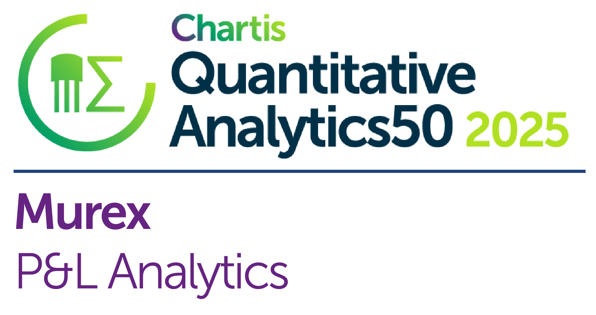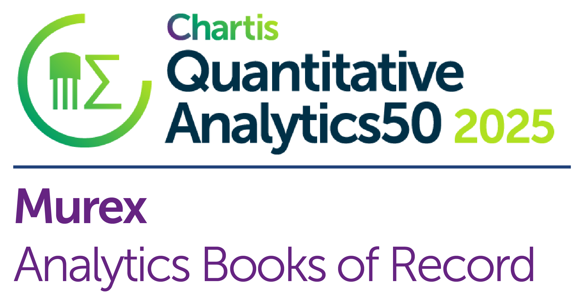 Murex secured a Top 5 technology ranking among vendors in the Chartis Quantitative Analytics 50 report in 2025. As part of the ranking, Murex won the Innovation in Market Risk award. In the solution category subsection, Murex won in the P&L Analytics category for the third consecutive year, as well as in the Analytics Books of Record category.